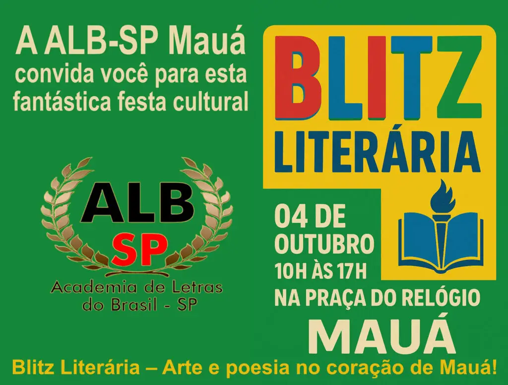 📚 Blitz Literária de Mauá celebra a força da leitura e da cultura no ABC Paulista o próximo dia 04 de outubro, a Praça do Relógio, em Mauá, será palco de mais uma edição da Blitz Literária, um evento que já se tornou referência cultural no ABC. A programação acontece das 10h às 17h e […]